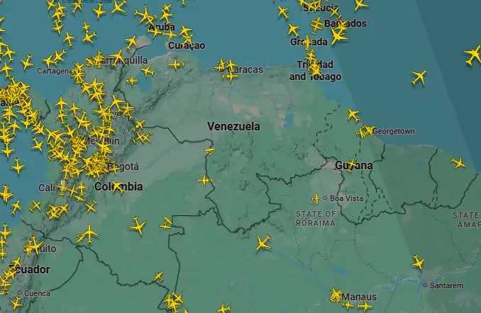 EUA fecham espaço aéreo da Venezuela - Foto: Reprodução/FlightRadar