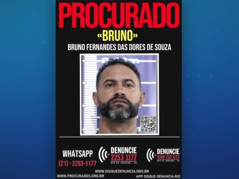Desde então, a Polícia Civil do Rio de Janeiro incluiu o nome dele na lista de procurados e solicita apoio da população com informações que ajudem na localização. O ex-goleiro foi condenado em 2013 a mais de 22 anos de prisão por crimes como homicídio, ocultação de cadáver, sequestro e cárcere privado.