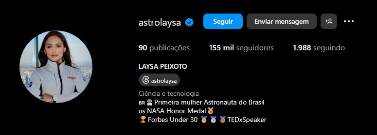 A publicação mais recente de Laysa, feita no último dia 5, afirma que ela se tornaria “astronauta de carreira” por meio da empresa Titans Space, supostamente liderada pelo veterano da própria Nasa, Bill McArthur. No entanto, a agência espacial americana deixou claro que não tem nenhum tipo de parceria ou relação com essa empresa privada. Além disso, a Administração Federal de Aviação dos Estados Unidos (FAA), responsável por regular voos espaciais civis, informa que a Titan Space ainda não tem autorização para realizar missões com tripulação.